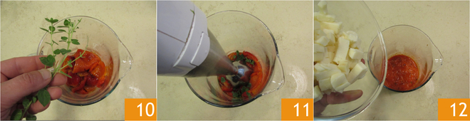 Blend again 13 to combine 14. Once the pasta is cooked, drain it and toss with the bell pepper cream 15.