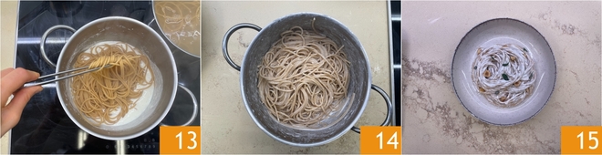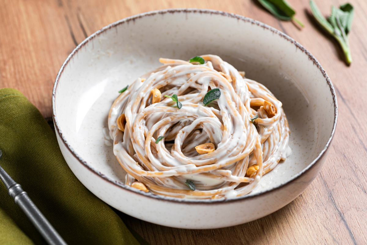 Drain the spaghetti al dente and transfer them directly to the pot with the fondue 13. Mix well to blend the pasta, without putting it back on the heat 14. Complete each plate with toasted hazelnuts and fried sage, for a crunchy and aromatic touch. Your pasta with hazelnuts and toma is ready to be served immediately 15!