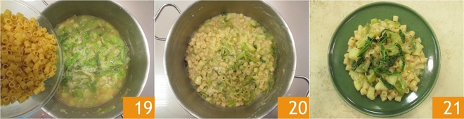 After the cooking time of the cabbage and potatoes, add the pasta 19 and cook it by adding a ladle of boiling water at a time, like a risotto. When the pasta is cooked, turn off the heat and adjust the salt and pepper, then stir in the grated cheese and mix well 20. Complete with the crispy cabbage and serve your pasta with lard, cabbage, and potatoes hot 21!