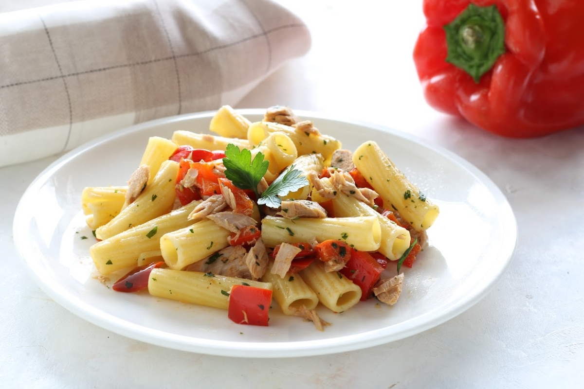 Let it season for a couple of minutes, then turn off the heat and season with chopped parsley 10. Plate, pepper, and garnish with a few parsley leaves, if desired 11. Your pasta with peppers and tuna is ready to be served 12!