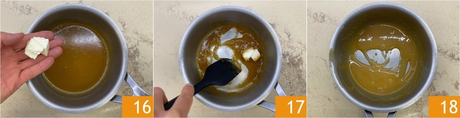 Once the liquid has reduced, remove the pot from the heat and add the cold butter little by little 16, stirring gently 17 to incorporate it evenly and obtain a smooth and homogeneous cream 18.