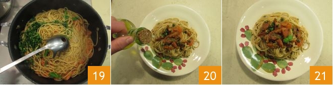 Toss everything 19 and plate. Garnish with a drizzle of oil 20 and serve your spaghetti with sea urchins and tomatoes hot 21!