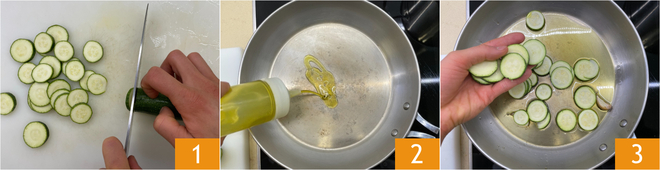 To prepare the pasta with zucchini and stracchino, first trim the zucchini and cut them into slices 1/4 inch thick 1. In a large pan, heat a splash of oil 2 with the crushed garlic cloves, then add the zucchini 3.