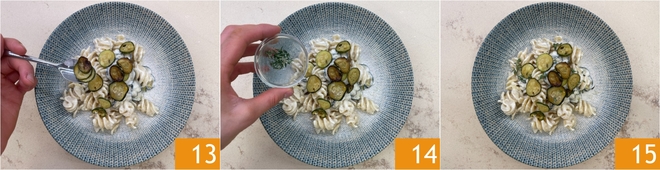 Complete the dishes with the zucchini set aside 13, thyme, and black pepper to taste 14. Your pasta with zucchini and stracchino is ready to be served 15!
