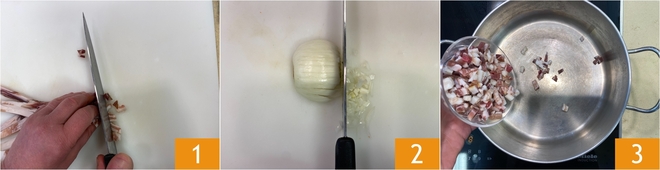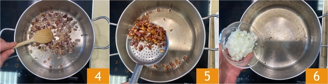 Brown it over high heat 4 until golden 5 then transfer it to paper towels so it loses excess fat. In the same pot, using the pancetta fat, sauté the chopped onion for a few minutes until softened 6.