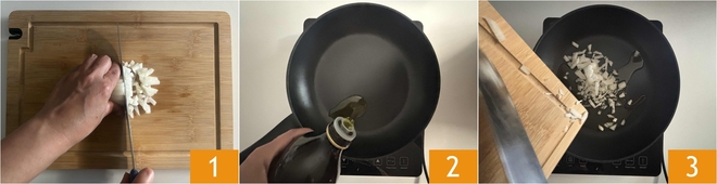 When the onion is soft 4, add the peas 5 and adjust with salt 6.