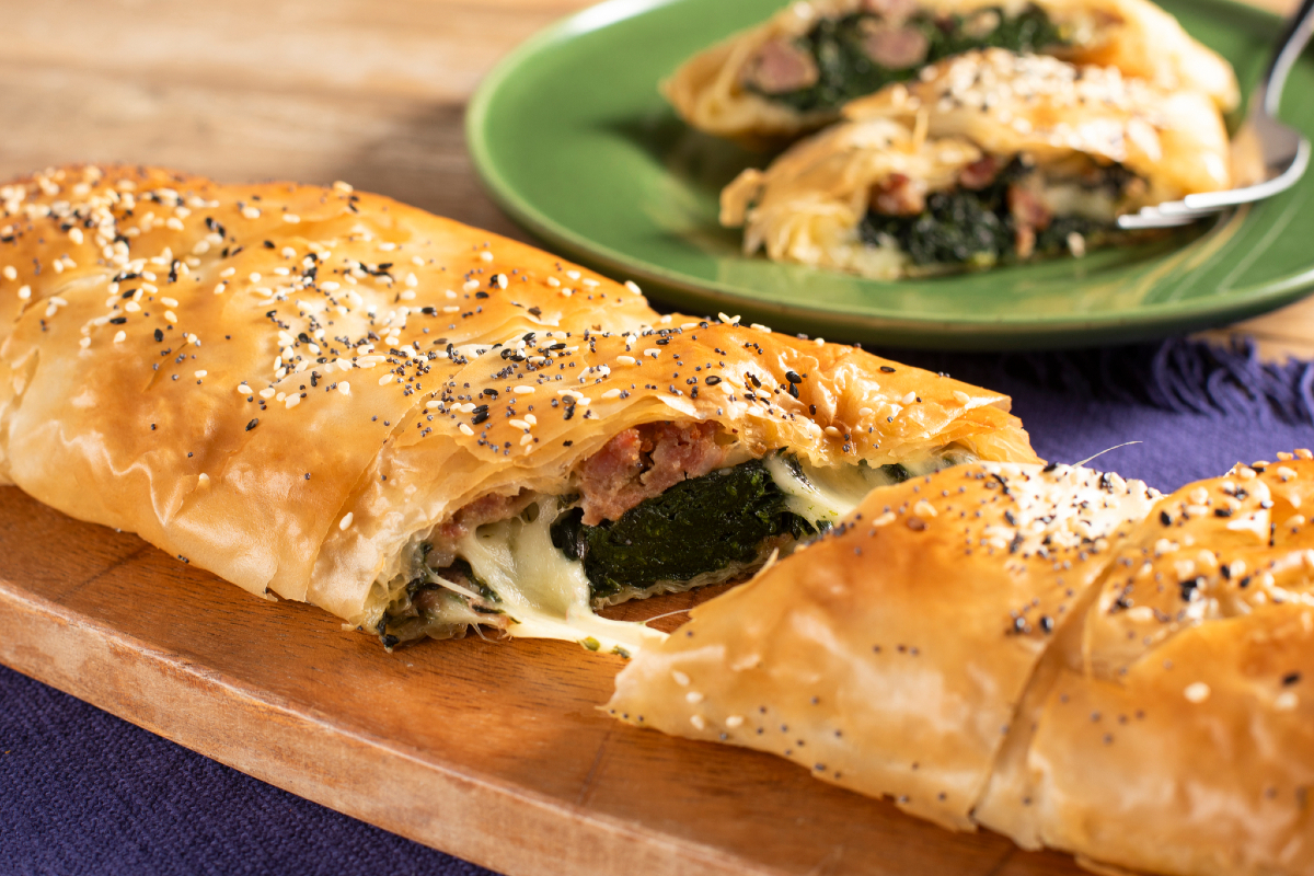 Phyllo strudel with sausage and spinach is really something else—trust me. Hailing from the beautiful region of Trentino-Alto Adige, it's a dish that perfectly blends hearty flavors with a golden, crispy bite. And the filling? Super tasty. It is rich with tender sautéed sausage, fresh spinach, and a creamy cheese core that just melts as it bakes. Seriously good. The magic, though, comes from using phyllo dough instead of that heavier puff pastry you find elsewhere. And makes it lighter, flakier, and even crispier. Can't go wrong.
