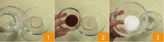 To make the pita with sun-dried tomato hummus, first prepare the dough for the pita: place the dry yeast in a small bowl (alternatively, you can use 9 grams of fresh yeast), add a little warm water 1 and the malt (or sugar) 2, then mix well with a teaspoon to dissolve everything. Pour the remaining warm water into another container, add the salt 3