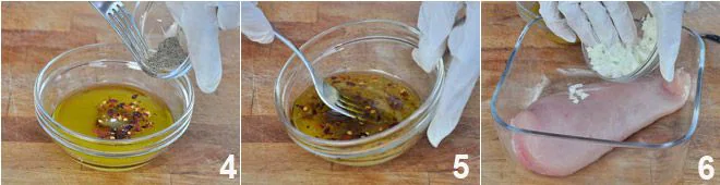 In a bowl, mix the lemon juice with the oil 1 the chili flakes 2 and the salt 3
