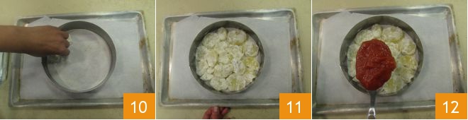 and arrange them inside the ring starting from the outside (10-11). Cover everything with a little sauce 12