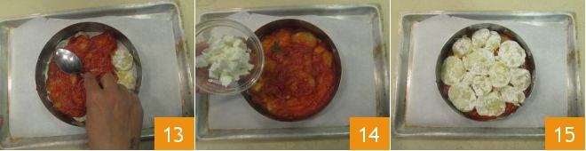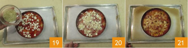Complete with the remaining sauce 16 and the remaining mozzarella (17-18).