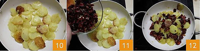 The cooking will take about 15 minutes until the potatoes are well browned 10. Season with salt and add the crunchy peppers cut into pieces 11. Sauté together for a few minutes, being careful not to break the vegetables, turn off the heat 12, and serve the potatoes and crunchy peppers immediately.