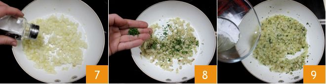 Salt 7 and pepper to taste and mix. Add the parsley 8 then pour in the vegetable broth 9 or hot water to aid cooking. Let it cook for about 20 minutes over moderate heat, until the Jerusalem artichoke cubes are softened.