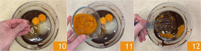 Add a pinch of salt 10 and 125 g of pumpkin puree 11, then mix until you get a homogeneous mixture 12.