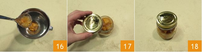 At this point, transfer the still hot jam directly into the jars you previously sanitized following the Ministry of Health guidelines reported at the end of the recipe. If you prefer, use the special jam funnel 16. Be sure to leave 0.4 inches from the edge, then screw the lid onto each jar well 17, without tightening too much, and let cool 18. With the heat of the jam, a vacuum will be created, allowing the product to be stored for a long time. Once the jars have cooled, check if the vacuum has occurred correctly: you can press the center of the lid, and if you don't hear the typical "click-clack," the vacuum has occurred. When needed, enjoy your quince jam on a slice of bread or in delightful preparations!