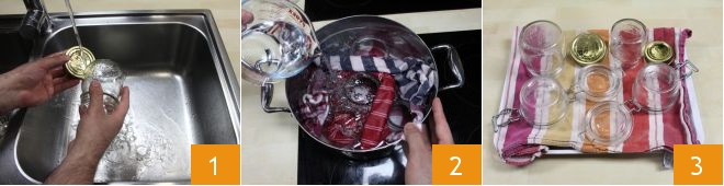 To prepare quince jam, start by sanitizing the jars in which to store it as indicated in the guidelines provided by the Ministry of Health and reported at the end of the recipe. After rinsing them thoroughly under a stream of plenty of running water 1, place the glass jars in a large, deep pot taking care to place a clean cloth between them so that the jars do not bump into each other during boiling. Fill the pot with water to completely cover the jars. Bring the water to a boil: at that point, lower the heat and let it boil for 20 minutes. Then insert the jar lids to sterilize them and let them boil for another 10 minutes. Finally, turn off the heat and let the water cool. When it reaches room temperature, remove the jars from the pot and let them drain upside down on a dry, clean cloth so they can dry completely 3.
