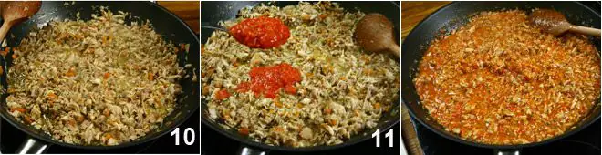 Add the tomato pulp 11 and cook for another 10 minutes, adjusting salt and pepper 12. Boil the chosen pasta and season it with the rabbit ragù.