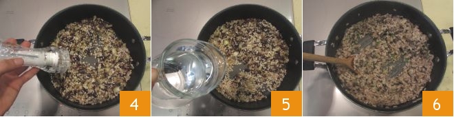 Season with salt 4 and pepper, then pour in about 2 cups of water 5 and cook the rice over medium heat, stirring often and adding more water as it gets absorbed: you'll need about 3 1/2-4 cups of water in total. Once cooked, the rice should be dry 6.