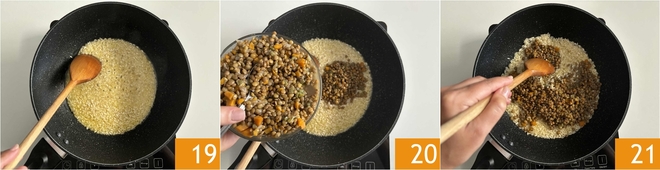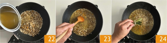 Continue cooking and add a little broth at a time, as needed 19. Halfway through cooking, add the lentils 20 and mix everything well 21.