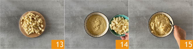 Cut them into cubes 13. Add the pears to the batter and mix with a spatula 14 15.