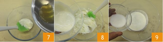 before pouring the mix over the pear cubes 7. Then add the lemon juice 8 and mix thoroughly 9.