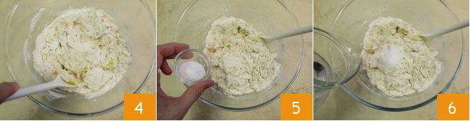 and mix 4. Now add the salt 5, pour in the water 6