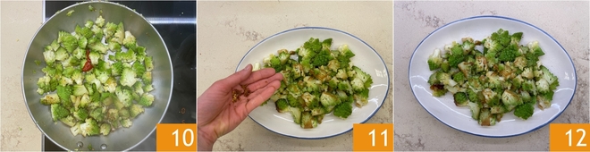 Cook for about 4 minutes over medium heat 10. If you like, you can finish with dried chili pepper to taste 11. Your pan-cooked Romanesco broccoli is ready to be enjoyed 12!