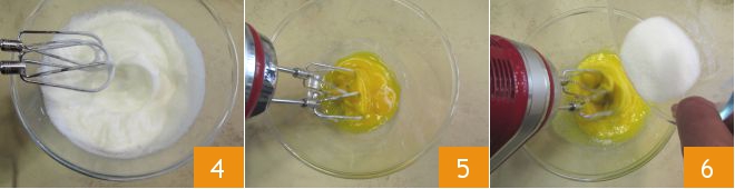 The egg whites should be light and frothy 4. Whisk the yolks as well 5 together with the remaining sugar 6.