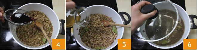 Cook everything for a few minutes over low heat; then add a glass of red wine and let it evaporate 4. Moisten the lentils with the broth 5, gradually, and continue cooking for at least 45/60 minutes, covered 6. Check often to ensure the legumes do not dry out too much: if necessary, add a few ladles of broth.