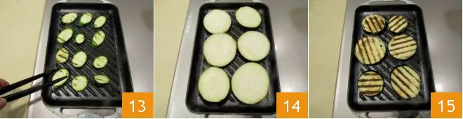 for 3 minutes 13 and proceed with the eggplants for another 3 minutes (14-15). Remember to always turn the vegetables for even cooking.