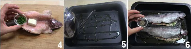 season it with chopped parsley and a piece of butter 4. Then take a baking dish and oil it 5. Place the two stuffed salmon trout inside and season them with salt and pepper on the outside as well 6.