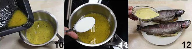 Collect the cooking juices from the trout in a small saucepan 10 and add a few tablespoons of cream 11. Let the sauce reduce over very low heat for a few minutes, adjust seasoning with salt if necessary, and once ready, pour it into a gravy boat. Serve your salmon trout with orange along with the accompanying sauce!