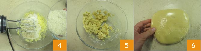 and the almond flour 4 and mix with the beaters until you have a homogeneous dough 5. Transfer the dough to the work surface and form a disc, wrap it in plastic wrap 6. Let it rest in the refrigerator for at least one hour.