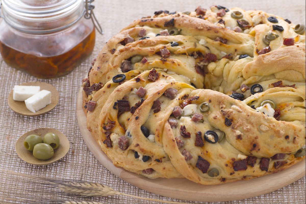 Angelica salata alla birra is, honestly, a real eye-catcher from Lombardy that gives a savory twist to the classic torta angelica. Instead of the usual sweet raisins and orange peel, this version goes all out with sun-dried tomatoes, olives, feta cheese, and salami, all wrapped up in a dough made with beer. I mean, the dough itself picks up a golden color and a slight tang from the beer—way beyond your basic beer bread recipe. And look, the way the dough gets braided gives it that special 'effetto scenografico'—it just looks awesome on a buffet table or as the centerpiece for a casual get-together. Pretty much. Folks in Lombardy love playing with tradition, and this dish is the perfect mix of local baking and bold Mediterranean flavors. They even toss in some Greek cheese for an unexpected twist—really, it's amazing. It shows how creative Italian baking can get, especially with savory beer bread.