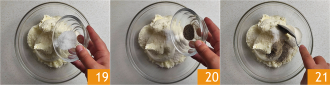 Adjust the salt 19 and pepper 20. Mix until you get a homogeneous mixture 21.