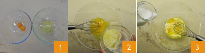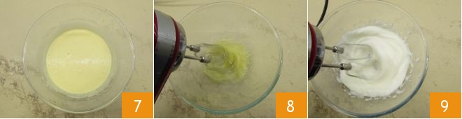 until you obtain a smooth, homogeneous batter 7. Now beat the egg whites with electric beaters 8 until they are white and frothy 9.