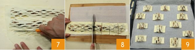 pressing with your fingers 7; cut the excess pastry, leaving 1 inch from the filling. Then use the lattice roller on the part without filling 8 and set aside in the fridge for at least 20 minutes 9.