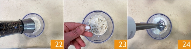 Season with pepper 22, add salt if needed 23 and blend everything with an immersion blender 34.