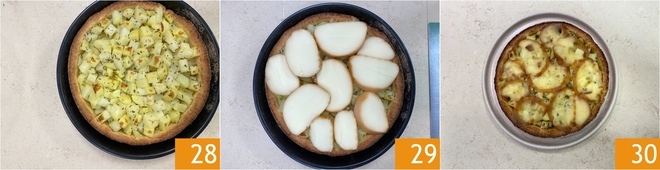 Take the tart out of the oven 28 and add the sliced smoked cheese 29. Complete baking under the grill for another 2-3 minutes, until the cheese is well melted 30.