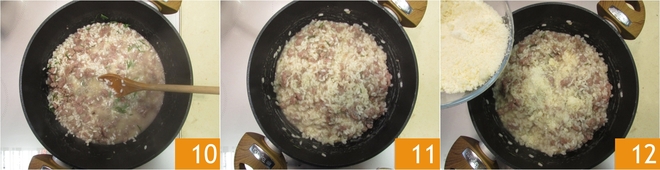 Continue cooking, adding more broth as needed and stirring occasionally to prevent sticking 10. As soon as the rice is cooked, turn off the heat 11, add the Parmesan cheese 12
