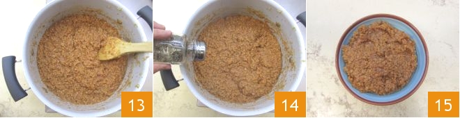 Continue cooking, on low heat, for 40 minutes, stirring often to prevent the ragout from sticking 13. Towards the end of cooking, add salt and pepper 14 and mix carefully. The seitan ragout is ready to be used in your imaginative recipes!