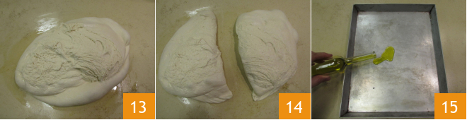 At this point 13 divide it into two pieces of about 2 lbs 14. Grease two trays measuring 14x11 inches 15.