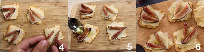 Then place two fig wedges on each pastry 4 and garnish with a teaspoon of wildflower honey 5. The classic puff pastries with figs, parmesan, and honey are ready 6: serve and enjoy them quickly, to not lose their freshness!