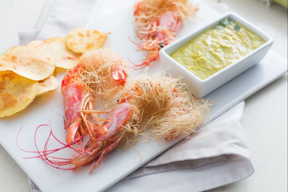 Kataifi prawns bring a bit of the Middle East to your table, turning a seafood starter into something special. The secret to this dish? The kataifi pastry—a dough made with just flour and water, shredded into super thin threads, kinda like angel hair pasta. Wrap the prawns in these delicate strands and fry them up. They turn out crispy and golden, with an unbeatable texture. Seriously good.