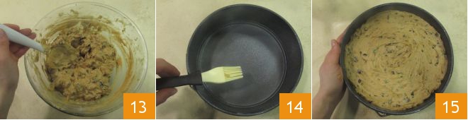 Incorporate the ingredients with a spatula to make the batter smooth 13. Grease a springform pan with an 8-inch diameter 14 and fill it with the obtained batter, leveling the surface 15. Bake the cake in a preheated static oven at 340°F for at least 2 hours, placing it on the lower rack.