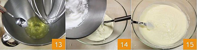 Separately, gently whip the egg whites with half a teaspoon of sugar to make them fluffier 13. Add them to the cream 14 and mix everything 15.