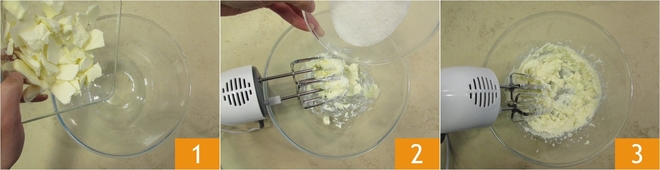 To prepare the soft melon tart, start with the base: in a bowl, place the softened butter in pieces 1 and start working it with an electric mixer. Once it has softened, add the sugar 2 and continue to beat the mixture until creamy 3.