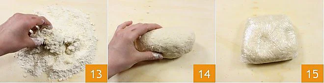 then continue with your hands 13, kneading until you get a smooth and soft dough 14. Wrap the shortcrust pastry in plastic wrap and let it rest in the refrigerator for 30-40 minutes 15.