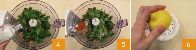 add salt 4 and pepper, and season with hot paprika 5. Then squeeze the lemon juice 6