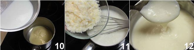 Finally, prepare the Parmesan cream (10-11-12) with the quantities indicated in the recipe, following the procedure you Parmigiano Cream (Parmesan cream). Heat the cream in a saucepan or for a few seconds in the microwave, cover the flans with a spoonful of cream and serve.